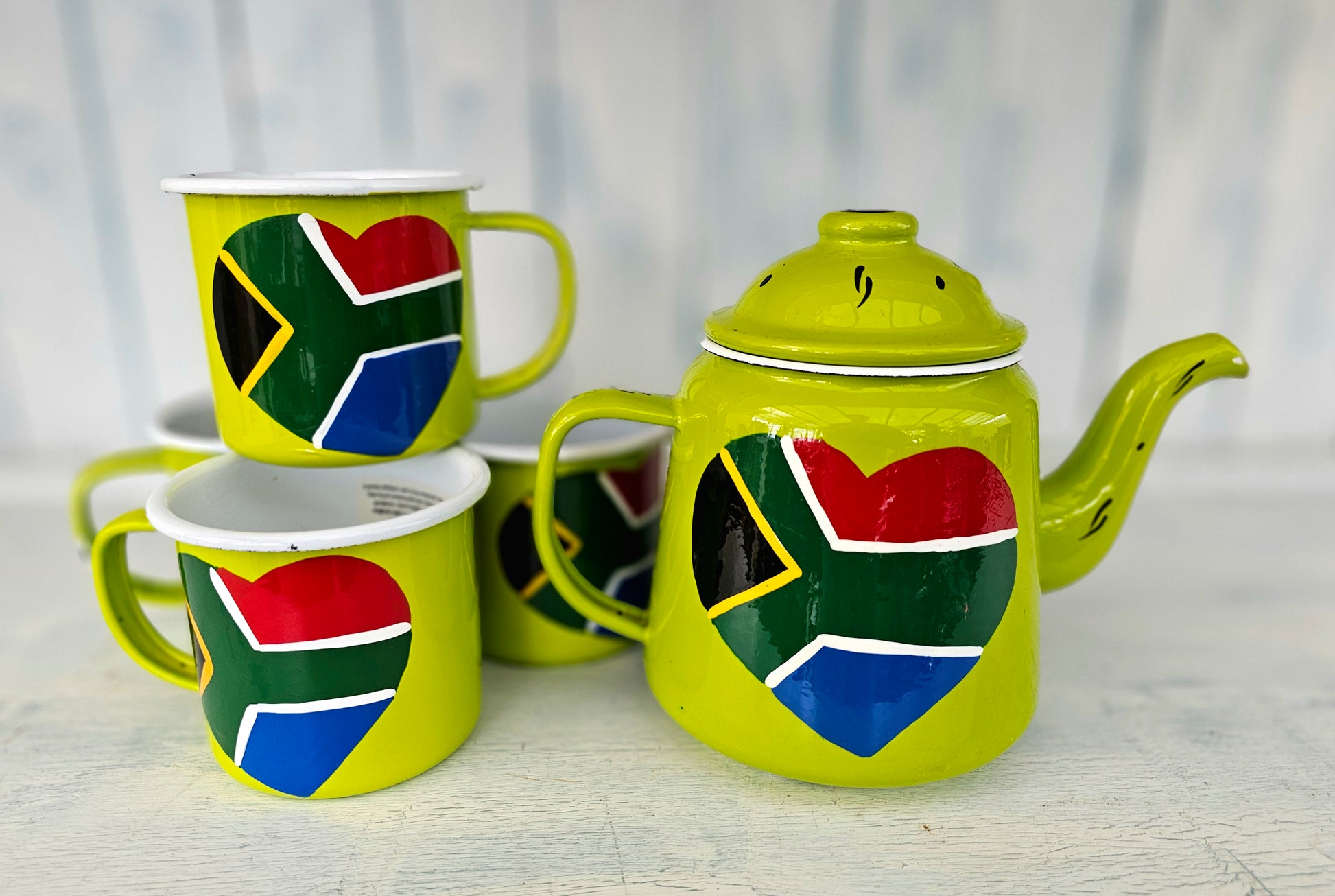 SA Flag in heart Camping Set - Hand painted in SA